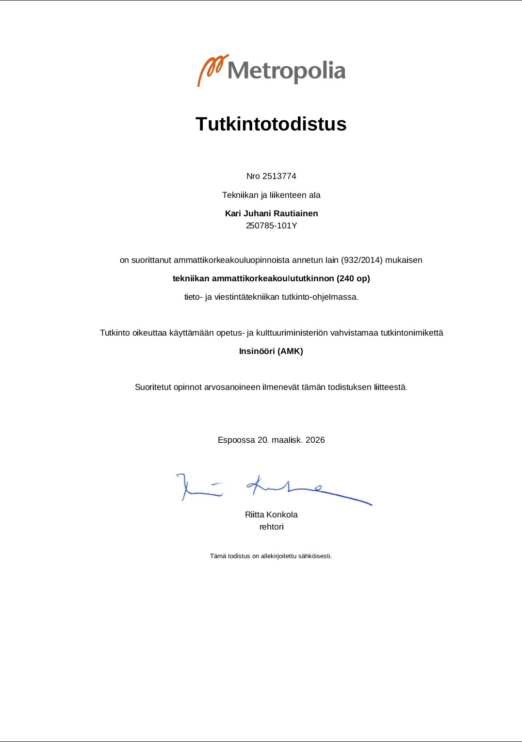 Koulutodistukset